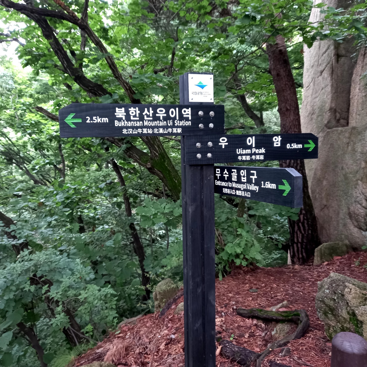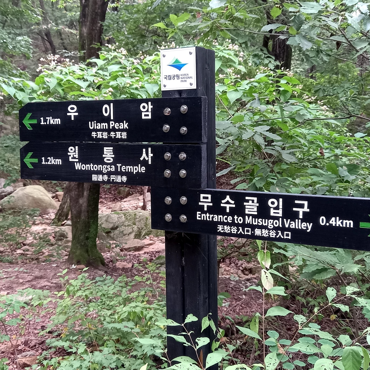 11시 30분 이정표가 있는 방학동 갈림길에 이른다. 이제 북한산 까지 남은 거리는 1.4Km이다. 이어 11시 51분, 차단막이 있는 국립공원 입구에 도착하여 산행을 마친다.