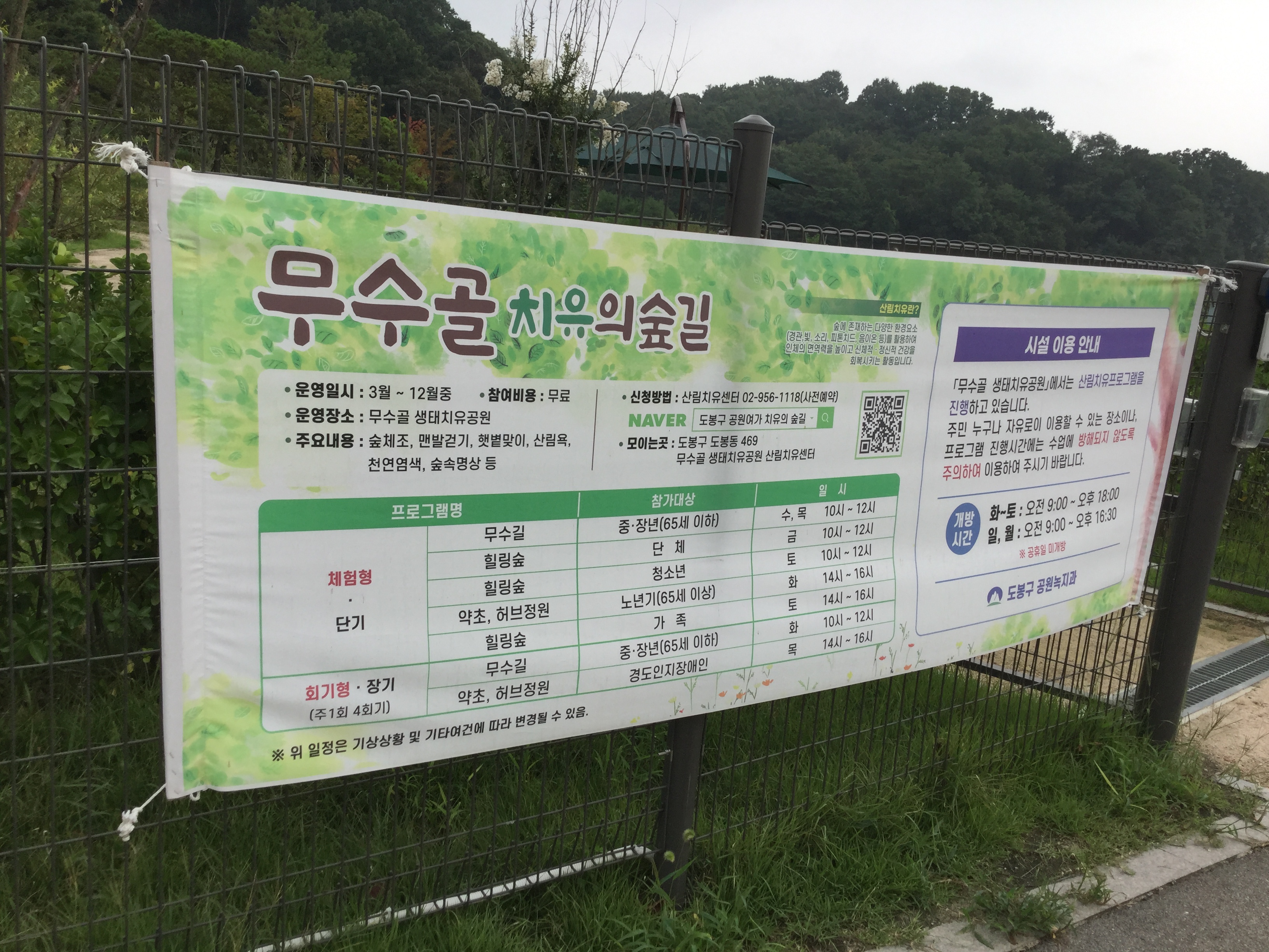 무수골 치유의 숲길 안내 – 코로나방역을 위해 잠정 운영중단 중임.
