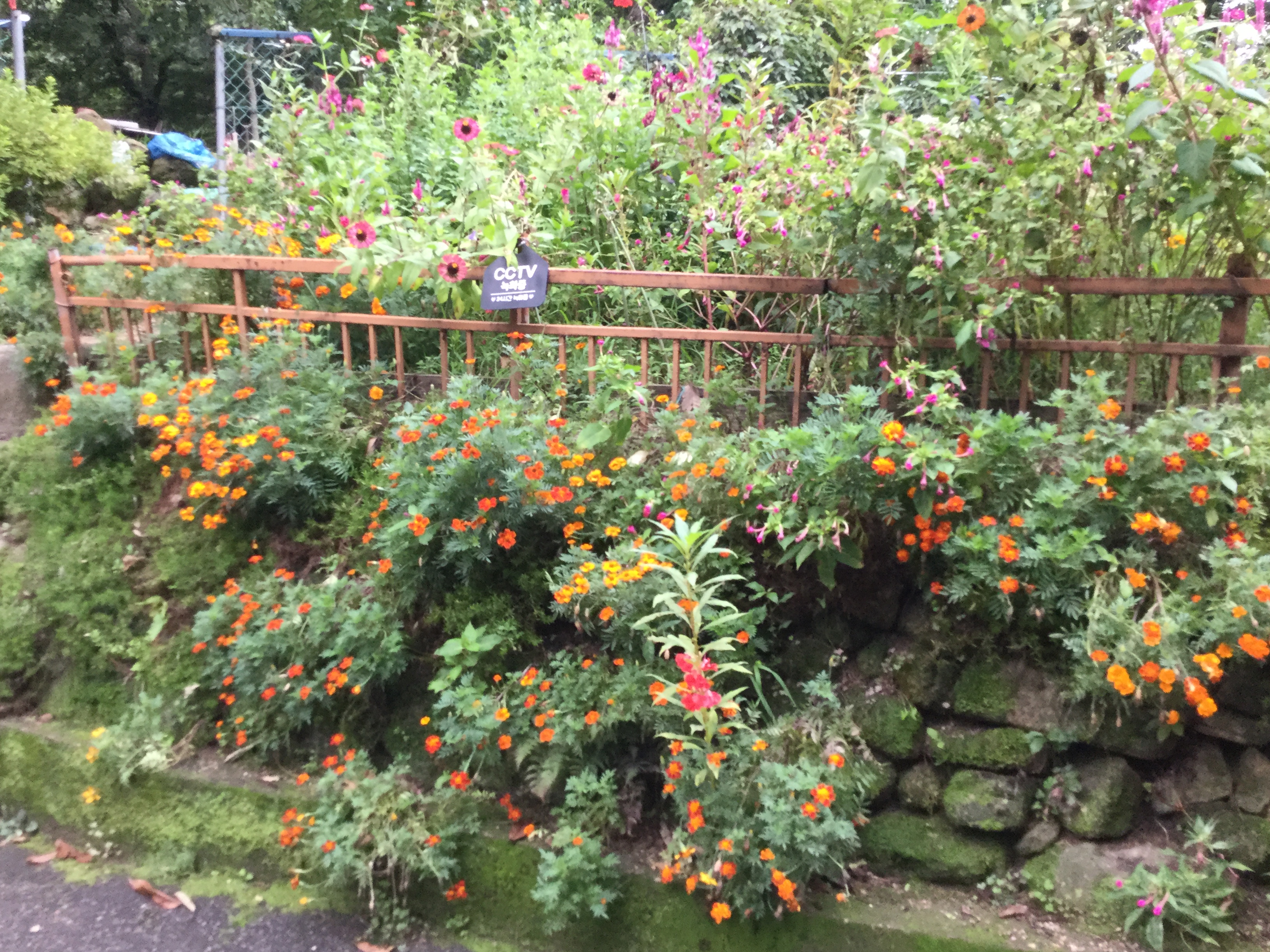 9시 31분, 이정표가 있는 갈림길에서 왼쪽 자현암 방향으로 들어선다. 자현암으로 이어지는 길이 아름답다. 오른쪽으로 보이는 능소화와 메리골드가 화사하고, 왼쪽 숲속에는 편안하게 쉬고 있는 산책객들이 눈길을 끈다